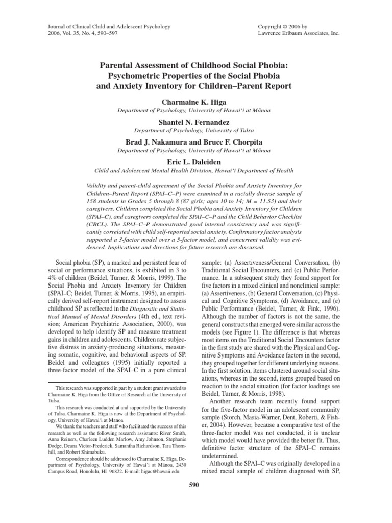 Psychometric Properties Of The Revised Child Anxiety And Depression